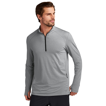 Get moving in style with this OGIO 1/4-zip that delivers premium comfort without the fuss. Engineered from a lightweight poly/rayon/spandex blend, it stands up to pilling and snagging while maintaining that luxe appearance you're after. Cool-tech moisture-wicking keeps you dry, and the UPF 30 rating shields you from the sun's rays. Smart design features include a tag-free heat transfer label, hidden zippered pocket for your valuables, convenient thumbholes, and a striking black reverse coil zipper. From the office to outdoor adventures, this adaptable layer keeps pace with your lifestyle. The embroidered O logo at the hem adds that signature OGIO polish to complete the look.