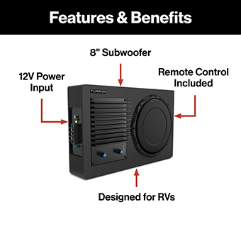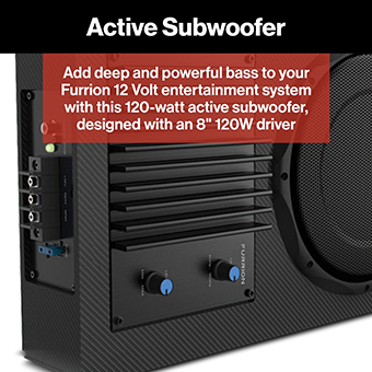 • ACTIVE SUBWOOFER — Add deep and powerful bass to your Furrion 12 Volt entertainment system with this 120-watt active subwoofer. Designed with an 8" 120W driver