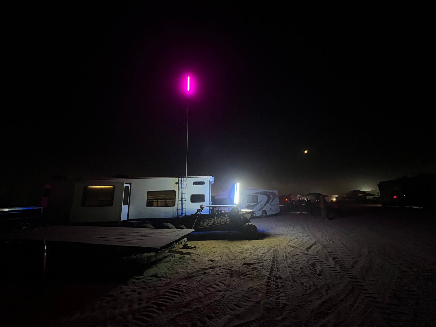 Say goodbye to "where's your campsite?" with our brand-new Camp Locator! This ladder-mounted marvel has been stress-tested with 4FT whips and hefty flags, proving it's built to perform. Your complete kit includes a sturdy ladder mount, adaptable pole that works with our entire whip collection, battery clamps, an eye-catching flag, full hardware set, and a V2 2ft Solid Color Whip to kick off your setup. Quick note: pack it away when gusty weather rolls in—wind damage isn't covered under warranty. Your fellow campers will spot your rig from anywhere on the grounds!