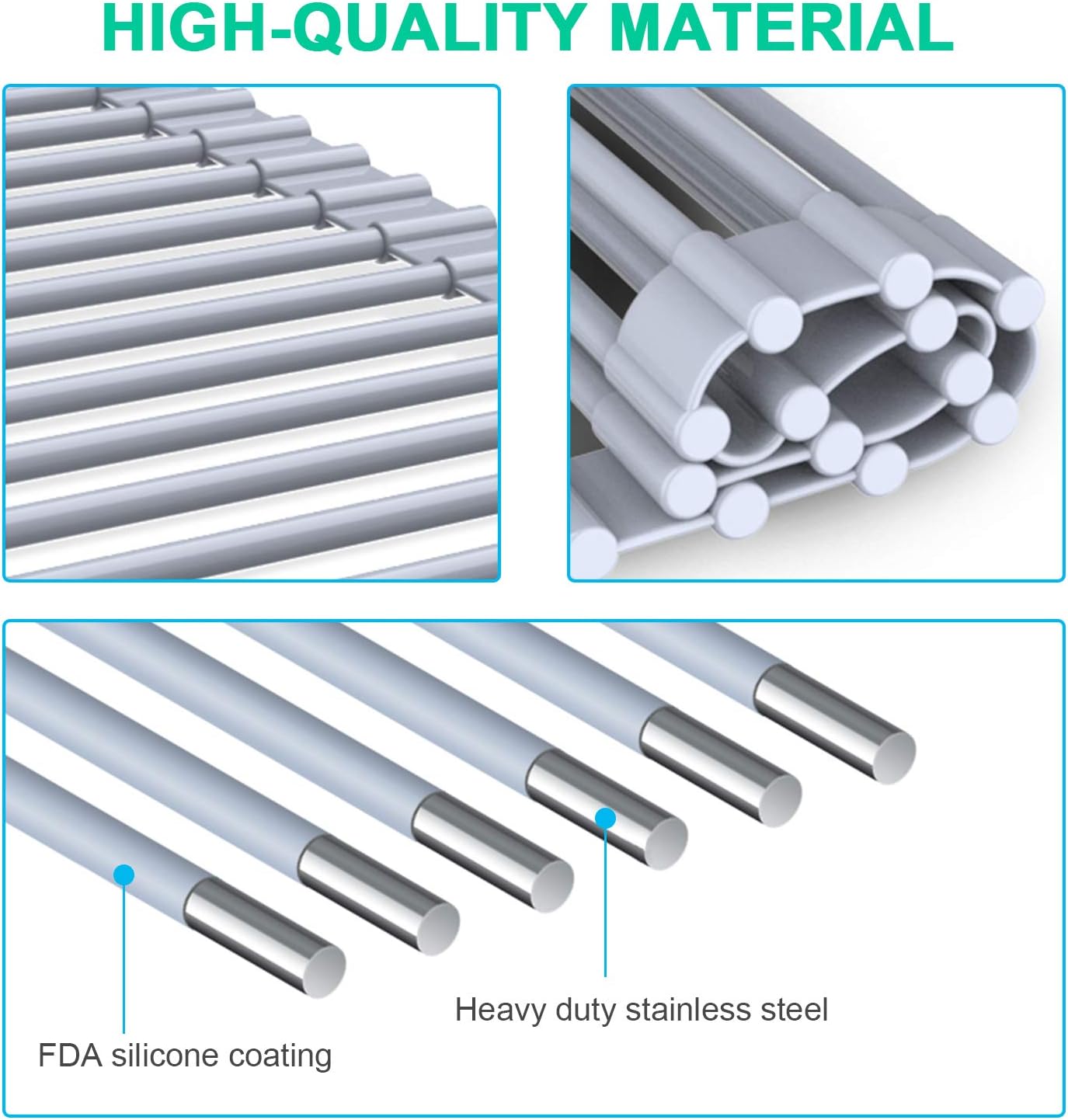 Roll Up Dish Drying Rack, Over The Sink Dish Drying Rack Kitchen Rolling Dish Drainer, Foldable Sink Rack Mat Stainless Steel Wire Dish Drying Rack for Kitchen Sink Counter (17.0''x13.1'')