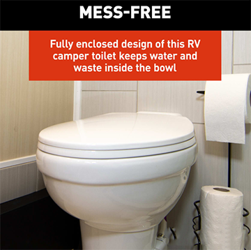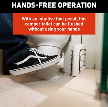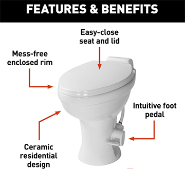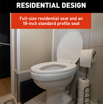This top-of-the-line toilet boasts powerful flushing capabilities, a sleek ceramic bowl, and a residential seat size for unparalleled comfort. Designed specifically for your rig, it combines all the best features of a household toilet with the convenience of being on the road. Upgrade your RV experience with Flow Max™ today!