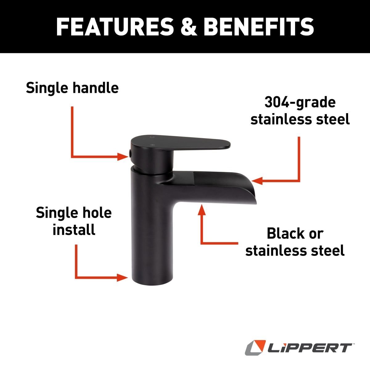 Elevate your bathroom oasis with our chic, black matte, or stainless steel Flow Max waterfall bathroom faucet. Our bathroom faucets are the perfect way to refresh any home or RV bathroom, with effortless single-handle functionality and a trendy open-head design. Crafted from robust, 304-grade stainless steel, Flow Max faucets guarantee lasting durability.