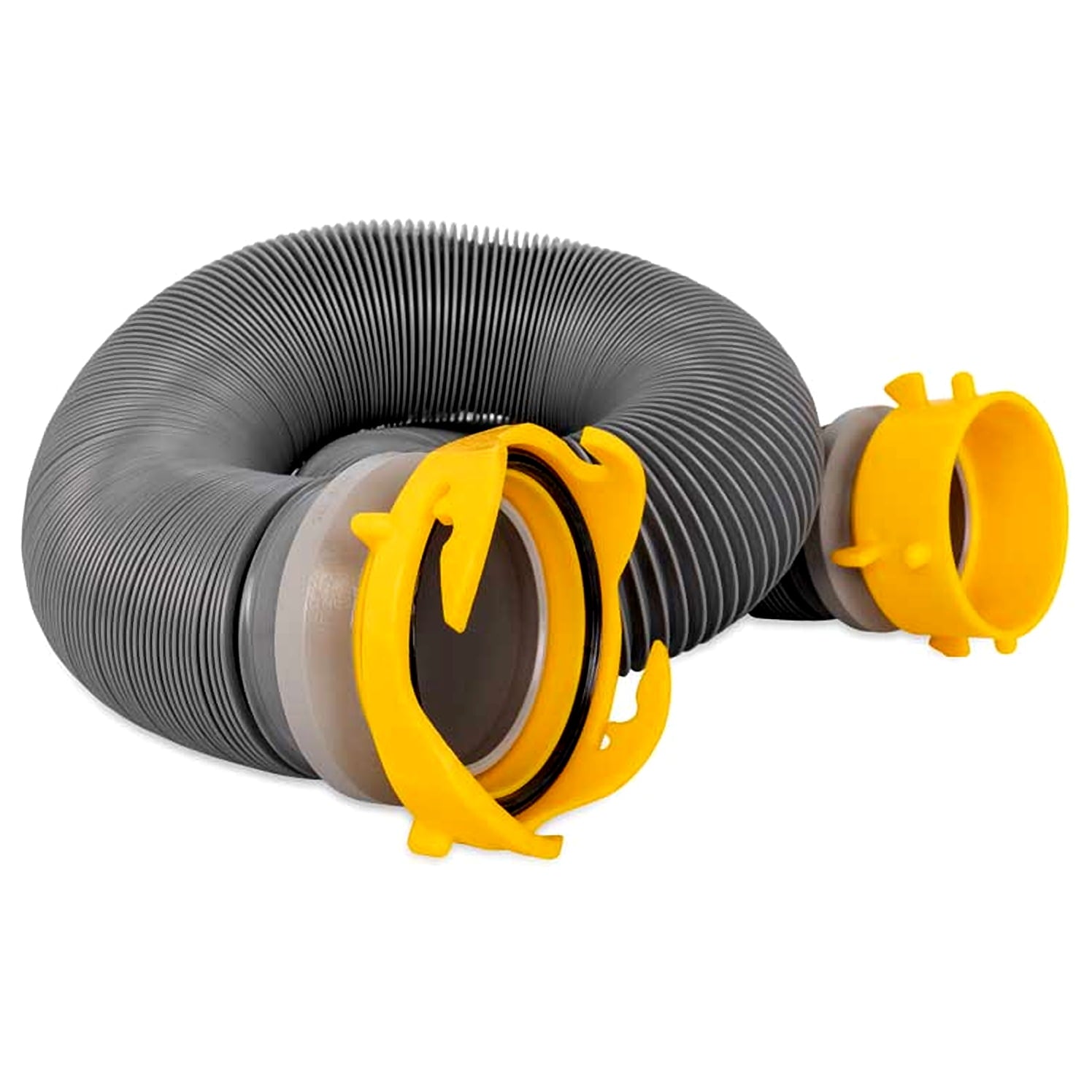 - Simple to Store: The hose and fittings compress for storage; Once the 4-in-1 adapter is removed, the sewer hose assemblies fit in 4-inch square bumpers