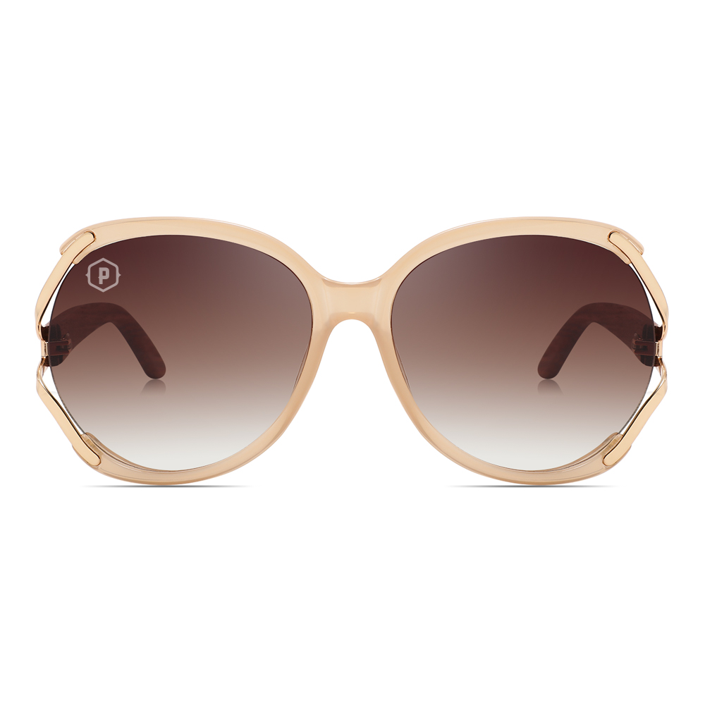 The Copper Halos – a stunning blend of elegance and bold design made for those who shine in their own light. These large, circular sunglasses feature a fading ombre lens in rich brown and purple tones, offering full UV protection and casting a captivating, warm glow. Framed with sustainably sourced rosewood, the arms add a smooth, natural finish, creating a seamless flow from lens to arm that feels both refined and refreshingly organic. With their distinct shape and striking style, the Copper Halos are perfect for those who seek effortless sophistication while exploring the world responsibly.