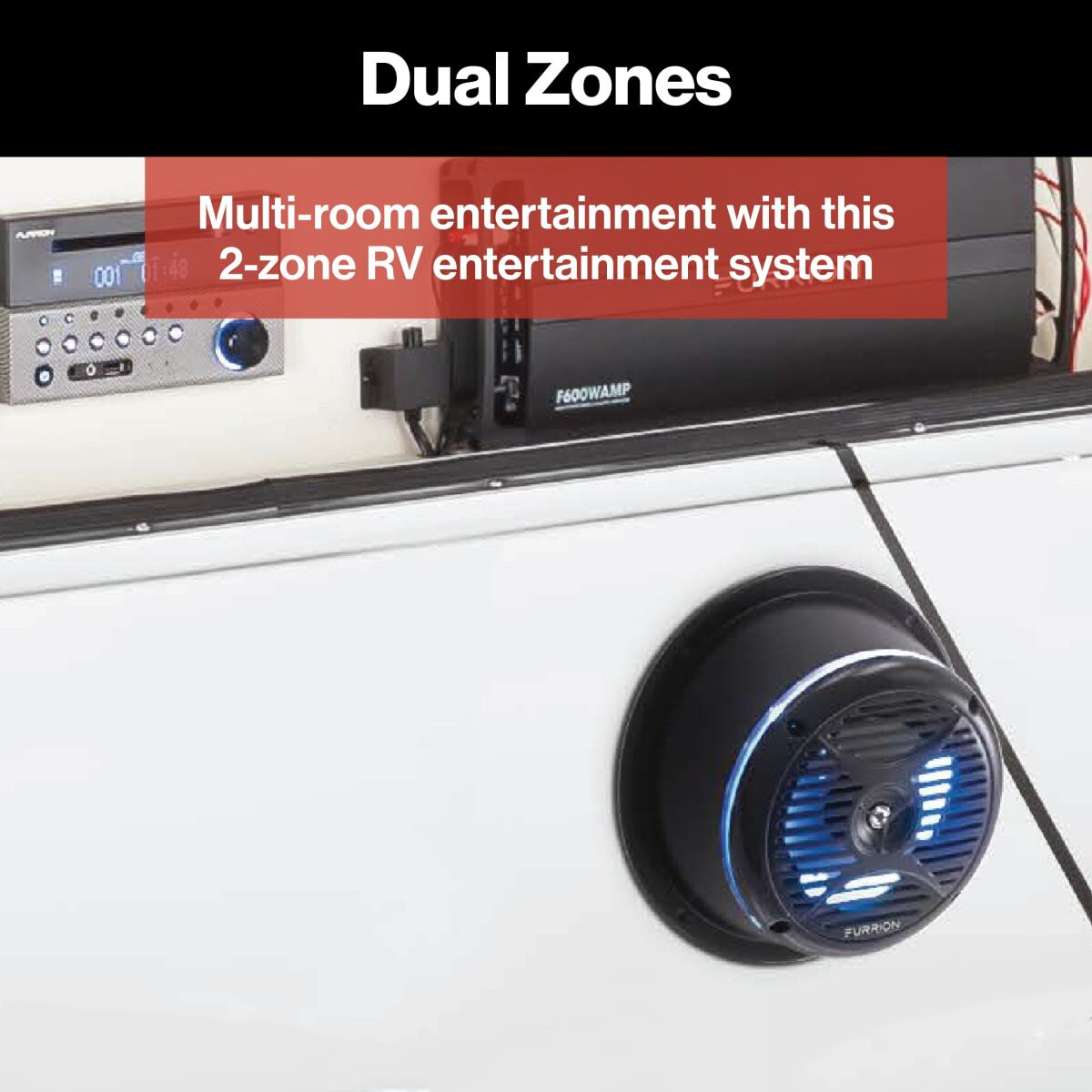 - DUAL ZONES -- Enjoy multi-room entertainment with this 2-zone RV and boat entertainment system