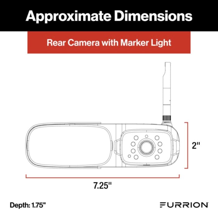 See your RV from every angle with the Furrion Vision S+ system. This 7" monitor displays up to three camera feeds simultaneously—side cameras with 65° viewing angles, plus doorway and rear cameras with 140° angles—eliminating dangerous blind spots. LED marker lights and rear assist lines guide you safely while reversing, giving you complete visibility around your vehicle. Back up with confidence knowing every obstacle is visible.