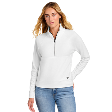Discover why this New Era® women's 1/2-zip deserves a permanent spot in your closet. The precision-engineered 7.8-ounce double knit jacquard (56% cotton, 44% poly) seamlessly blends a sleek smooth finish with a luxuriously textured jacquard interior, creating a piece that looks refined while feeling incredibly soft against your skin. The heat transfer label eliminates uncomfortable tags, letting you enjoy all-day comfort without distraction. The premium Metaluxe® zipper delivers smooth, dependable performance every time you wear it, while the front pouch pocket with concealed side zippers offers practical storage that doesn't compromise style. The embroidered New Era flag logo adds authentic brand credibility and heritage appeal. Lightweight yet built to last, this versatile layer seamlessly transitions from layering essential to standalone statement piece, making it the smart investment that transforms how you dress.
